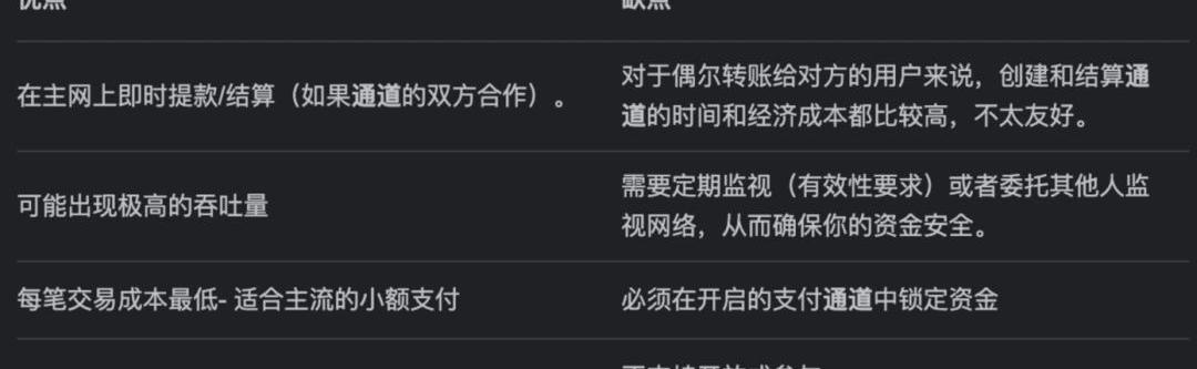 在分片实现之前,有状态通道可以扩容,即支付通道协议在btc上应用的一般化。下图是以太坊官网给出的优缺点对比。