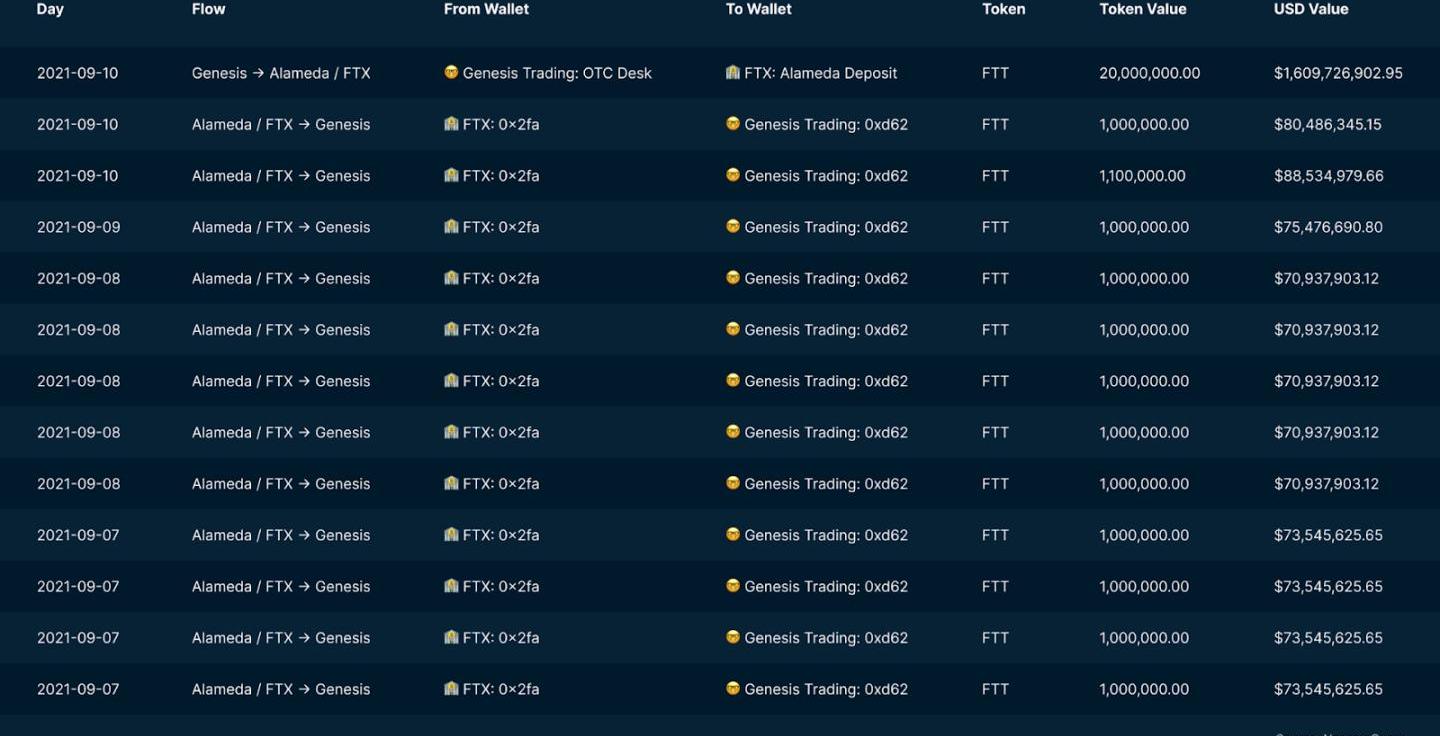 Alameda/FTX与GenesisTrading的FTT代币交易