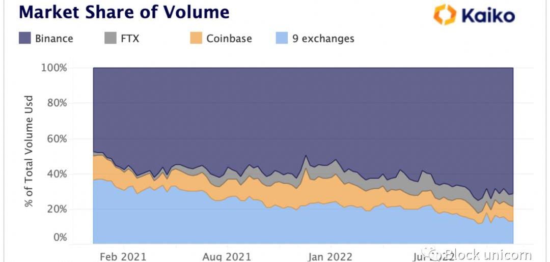 (其他9个交易所中包括FTX.US--0.8%--和Binance.US--1.7%--因此,如果考虑到这些美国实体,总市场份额甚至更大。)
