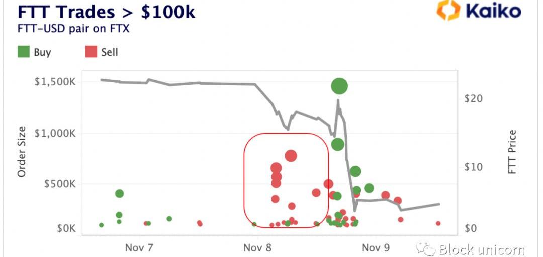 随着Binance的潜在收购消息的传播,FTT出现了短暂的飙升,有几个非常大的市场买单,可能是Alameda在试图推高价格,但市场很快就对这一举动的严重性重新定价。