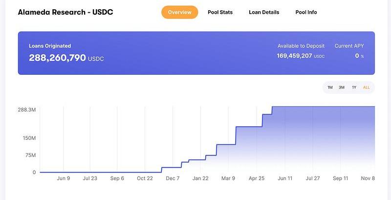 下面是由?OrthoCredit和?M11?Credit?管理的?Maplepools,尽管Alameda在过去有超过1亿美元的贷款,但没有未偿还贷款。
