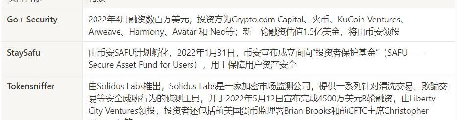 Go+Security:覆盖的公链最多,且涵盖的风险指标更多,可更加全面了解潜在风险Tokensiffer:同样有较多覆盖指标,同时每个指标有详细解释,可以更加深入理解风险点StaySafu:风险指标和支持公链较少2.2钱包防钓鱼插件