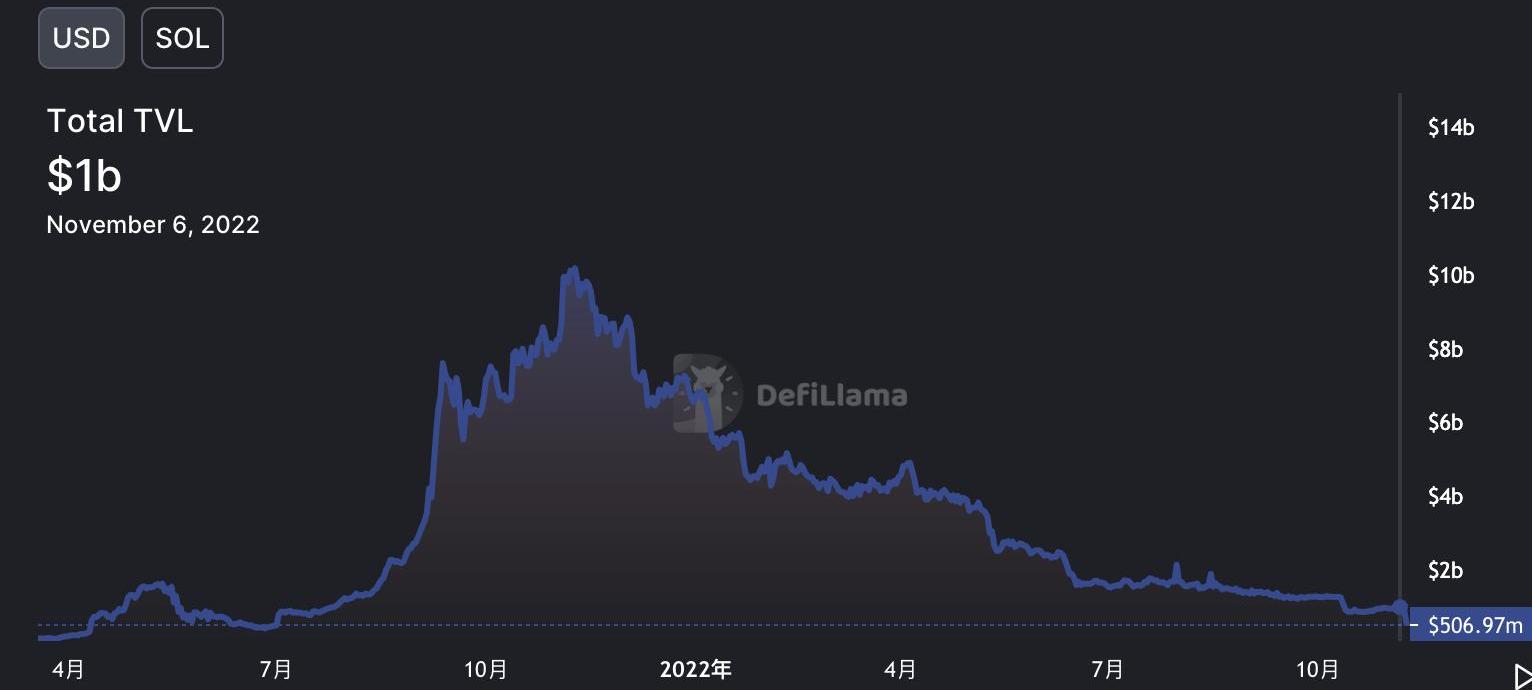 Defillama数据显示,Solana总锁仓量3日缩水50%,由10亿美元减少至大约5亿美元,24小时降低40.76%,排名落于Optimisim之后。