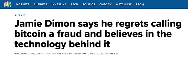 那一年,比特币的价格一度冲到20000美元,当时,杰米·戴蒙立刻变了脸,他表示对把比特币称为局这一言论,感到抱歉。