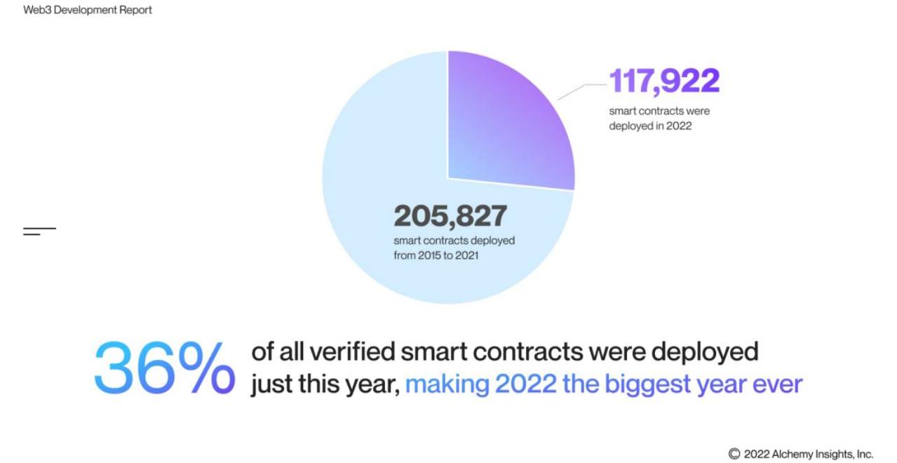 ●所有部署和验证的智能合约中,有36%是在2022年部署的。