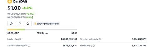 截至9月14日,根据?CoinGecko数据,DAI流量量约6.38B。这些流通中的DAI证明了人们想要更多的访问权限、更多的机会和对自己财务的更多控制权。