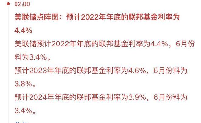 2.最重要的则是点阵图显示的未来利率预期。预计22年底利率是4.4%,23年底利率是4.6,24年底利率是3.9%。怎么解读?
