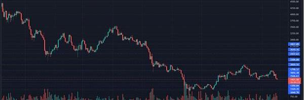 在过去24小时内,该代币贬值了2%,而在上周,以太坊注意到了17%的跌幅。目前,ETH横盘整理,价格变化很小。