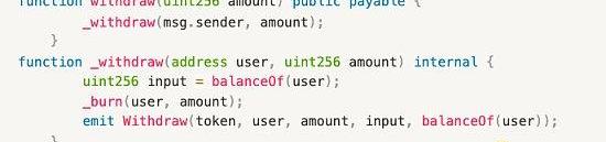 withdraw仅包含一个参数:将要被burn掉的token数量。对应的token合约中的withdraw()函数如下: