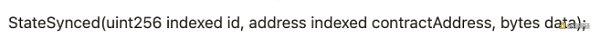 3、StateSender.sol中的syncState()函数将提交事件StateSynced,具体为: