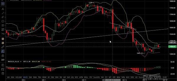 在目前的行情趋势点中可以看到大体的K线价格都是直接上方开口的形态,这样走势空间给到后市极大的跳空路线,从小时K线图中可以看到币价多次的想去试探企稳在1800位置.