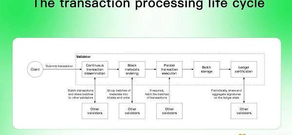 -批量处理:在交易传播过程中,交易被每个验证者分组为批次,而在共识过程中,批次被合并为区块。