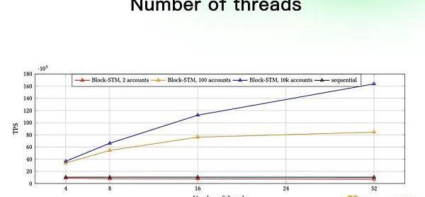 可以看到在10k个账户竞争的情况下,32线程情况下可以达到16w的TPS,并行执行的优势在大量账户的竞争交易空间时得到体现。
