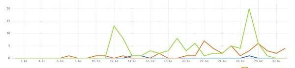 在过去的7月份数据为例,Nori和Moss在大多时间具有相似的社交媒体关注度,且高于KlimaDAO。