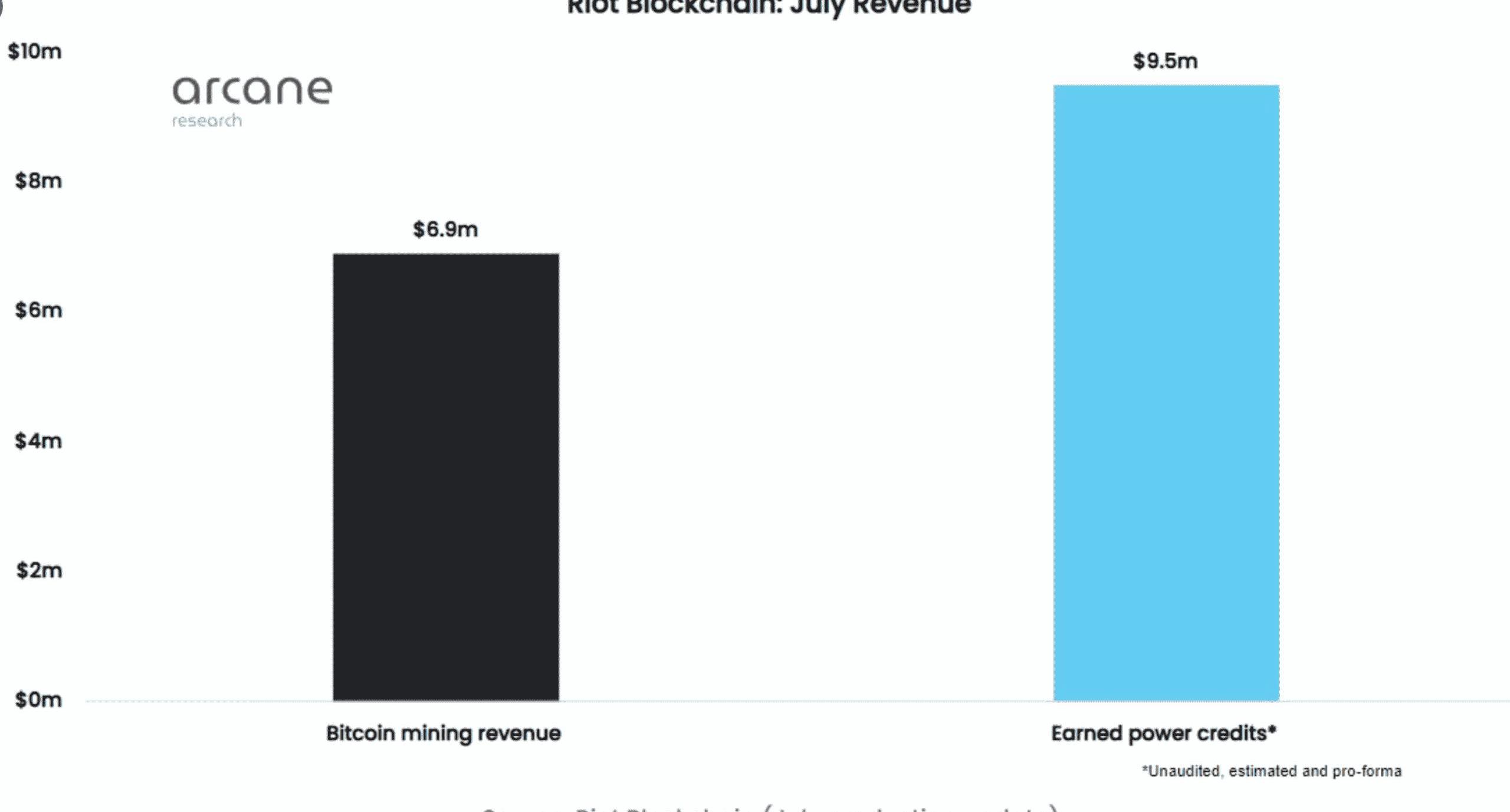 RiotBlockchain?在7月份产生了价值950万美元的电力积分,大大超过了本月318BTC的比特币产量,价值690万美元。