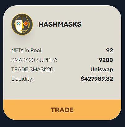 所以,假设你想要接触到一些Hashmasks收藏品,但你更希望在一段时间内稳定购买你的第一个。你可以转到NFT20的资产仪表盘,找到Hashmasks集合,然后点击“Uniswap”按钮旁边的“交易$MASK20”选项。