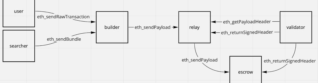新的构建者角色使用用户交易构建以太坊执行有效载荷区块,并将其与提议者(验证者集中随机选择的子集)的投标一起提交。一旦提议者接受了有效载荷,他们就会在区块上签字,并通过网络传播它。由于发送给提议者的有效载荷被剥夺了交易内容,这种结构消除了验证者抢先交易的可能性。在一个有效的市场中,区块空间市场的引入也会激励构建者出价到提取的MEV的全部价值,允许去中心化验证者集获得大部分MEV奖励。与模拟以太坊相比,这种设置阻止了矿工潜在的不稳定共识,并减轻了有害的MEV。?