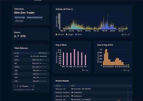 Nansen有一个SmartMoney功能,可以让你识别其他和某些钱包高度相关的“相关钱包”。在观察巨鲸和跟踪聪明的钱都在做什么/正在和哪些合约交互的时候,这个功能尤其有用。