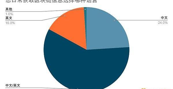 从获取区块链信息的语言选择来看,中英文双选项占据59%,说明了加密行业的无国界性,以及英文信息占据主流影响力。