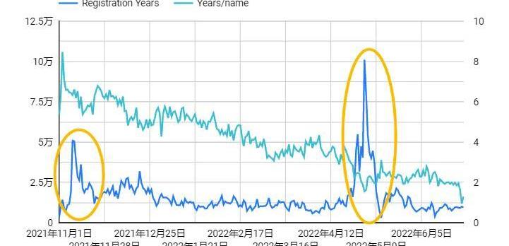 第二段爆发期是2022年4月开始的ENS域名炒作潮。