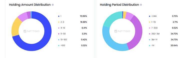 从ENS域名在NFT市场所表现出来的数据来看,普通用户依然是ENS的主旋律。持有一个ENS的用户超过70%,ENS数量少于或等于3个的用户占比约87%。从持有时长看,持有时间超过3个月用户占比约55%。