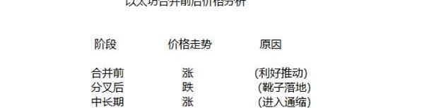 再看中长期,并前的话,从历史上来看它肯定是涨的啊,原因是什么?是因为合并利好的推动,或者说大家当时都在买消息,分叉后从历史上看,每一次硬分叉之后,这个币价都是会有一轮的下跌,它原因就是靴子落地或者是买完消息卖事实。从中长期来看,以太坊又将会是上涨的原因,就是以太坊合并之后会进入一个通缩的状态。