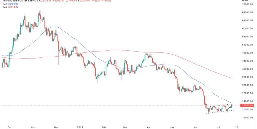 在过去的三十天里,比特币经历了最严重的抛售压力之一,但它已经从22,000美元飙升至23,000美元。然而,该货币无法长时间保持在该水平,因为它回落至22,000美元的水平。
